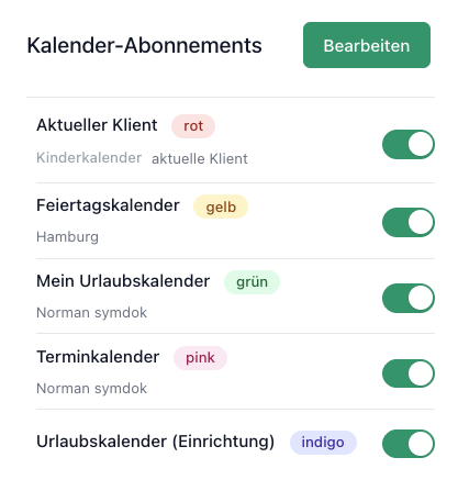 Sobald Sie das Abo eingerichtet haben, können Sie die importierten Termine über Abo-Menü(Einstellungen) ein- oder ausblenden und über einen extra Schalter beliebig aktualisieren.